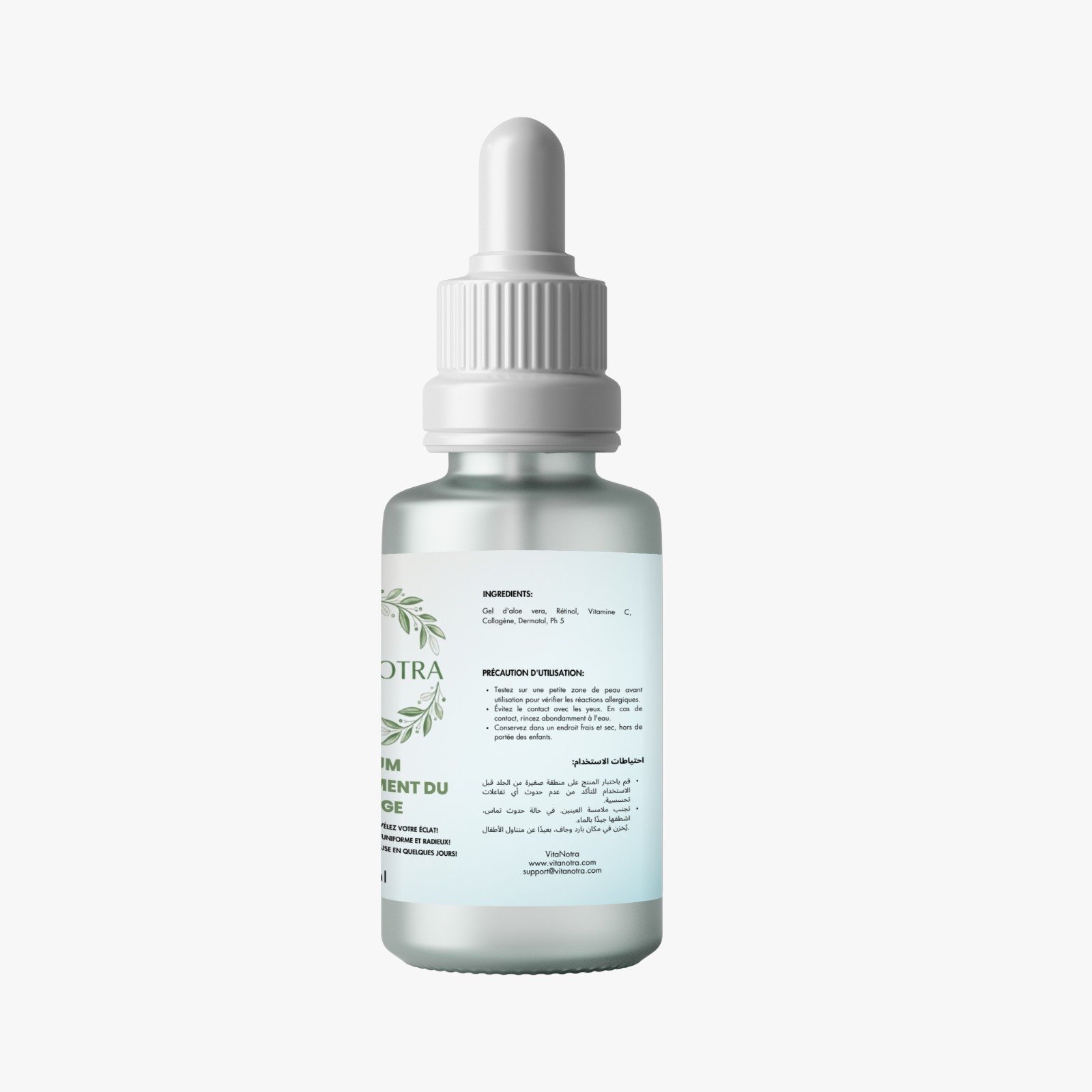 هو منتج متطور مصمم خصيصًا لتعزيز إشراقة الوجه وإضفاء تألق صحي. ينساب هذا السيروم برفق على البشرة، مدعومًا بتركيبة متميزة من المكونات الطبيعية والفعالة التي تعمل على توحيد لون البشرة وتقليل التصبغات والبقع الداكنة